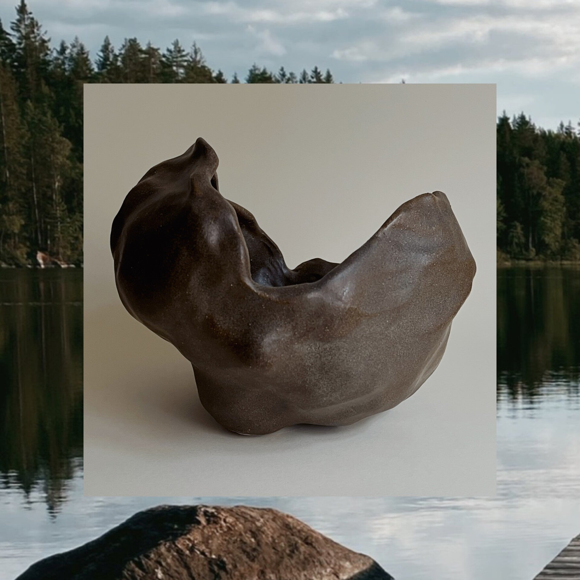 Den här skålen är gjord i en grå lera med chamotte. Chamotte är bränd krossad lera som man blandar i leran för stabilitet och andra egenskaper. Ytan är inte slät.