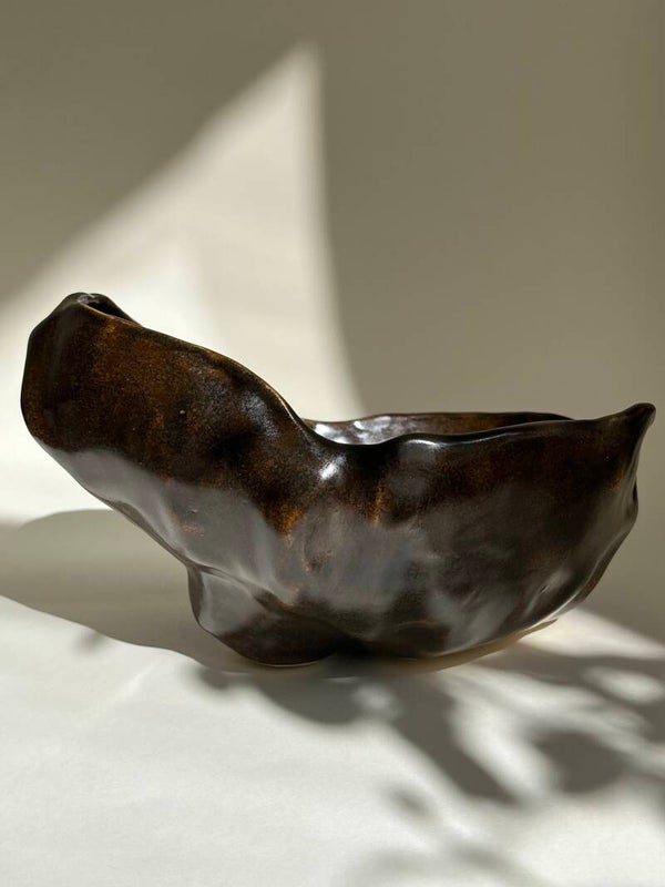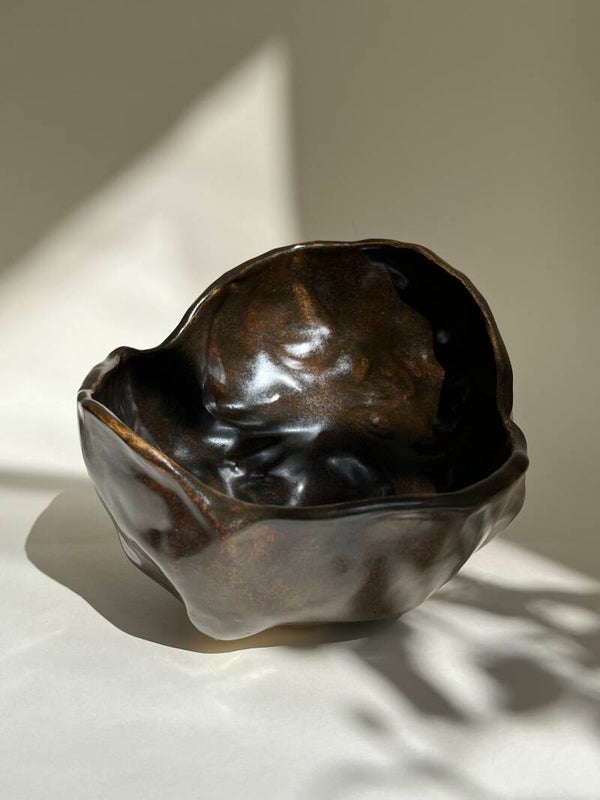 Denna skålen är gjord i en vit lera med slät glansig finish av en Tenmokuglasyr.