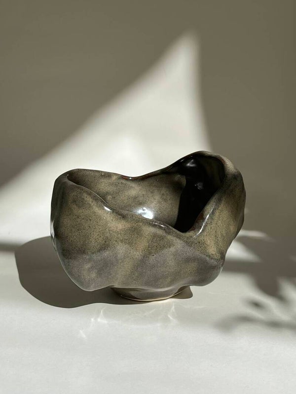 Den här skålen är gjord i en vit lera. Ytan är blank.