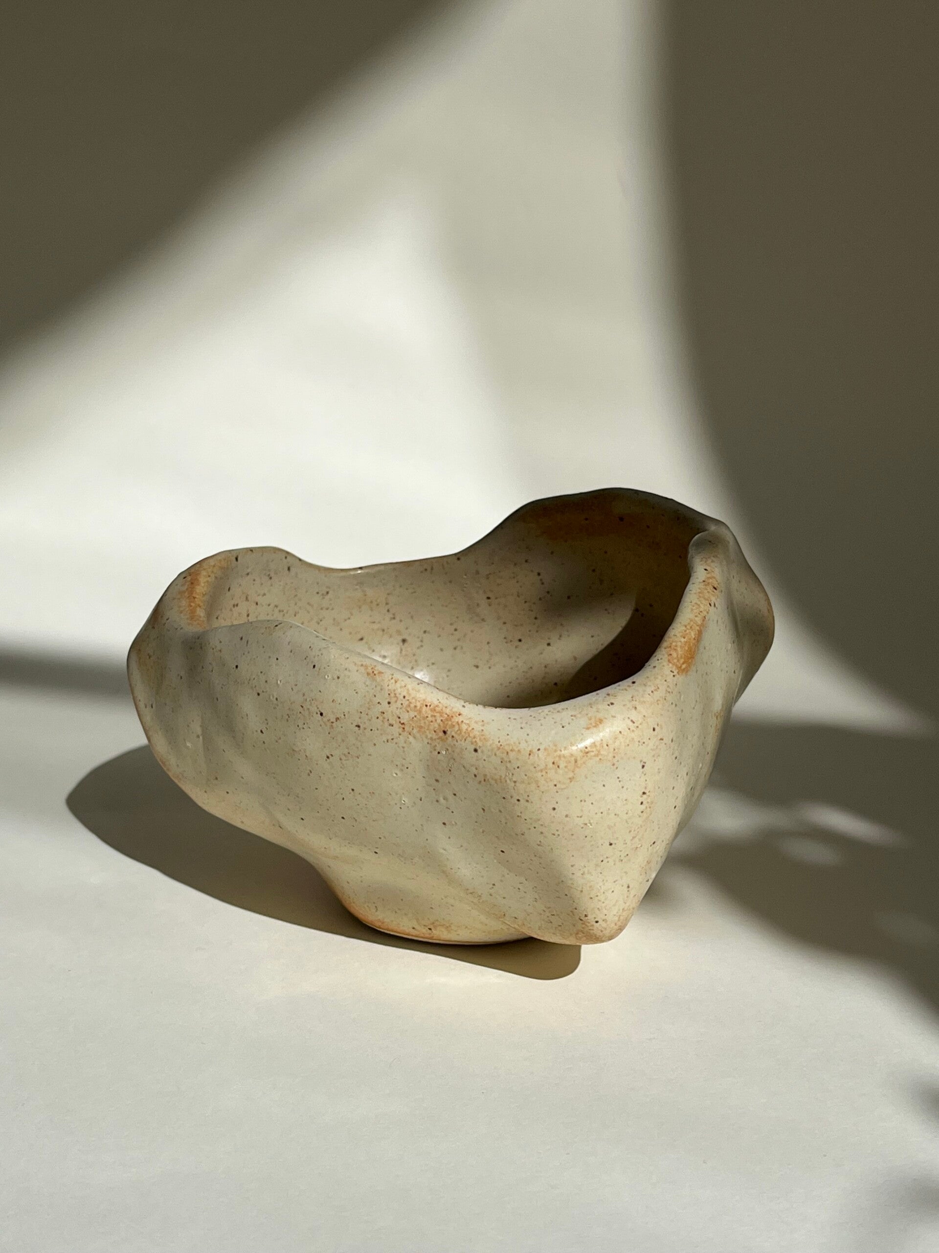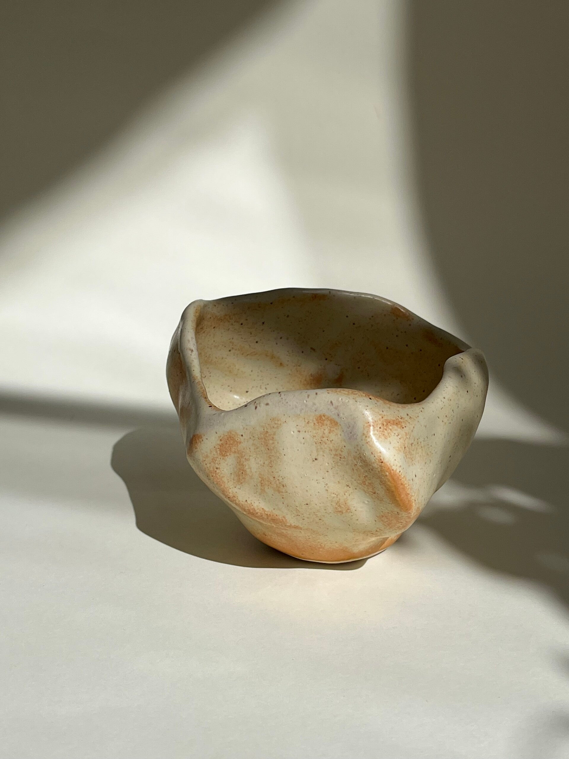 Den här skålen är gjord i en vit lera. Den är slät och glasyren är matt ljusbeige.