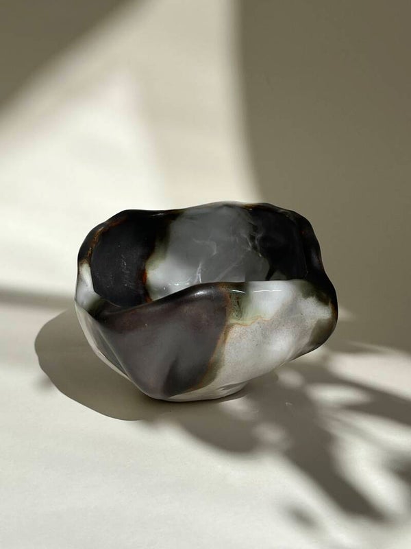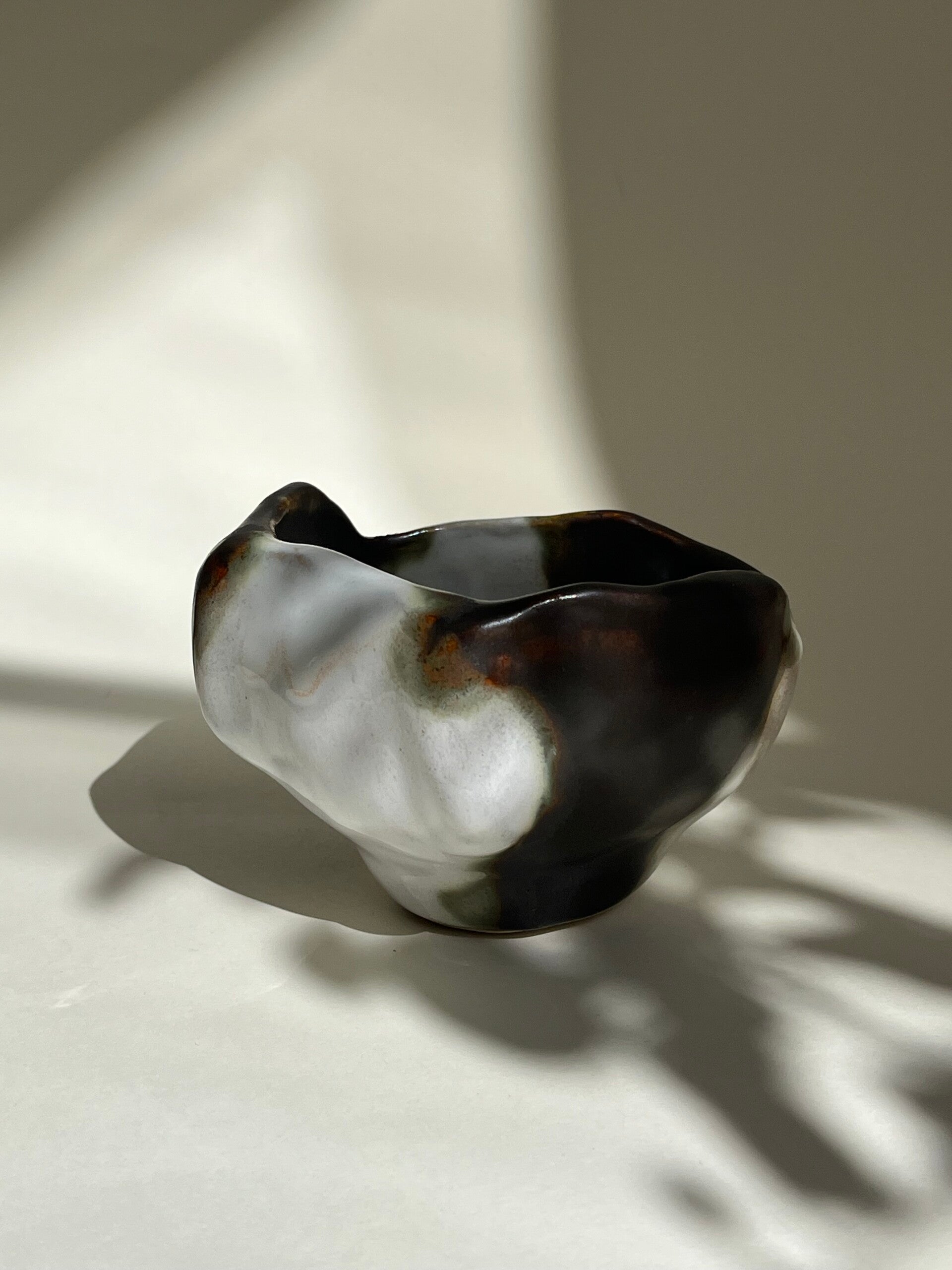 Glasyrerna är vit och mörkbrun med detaljer av grönt och bernsten.