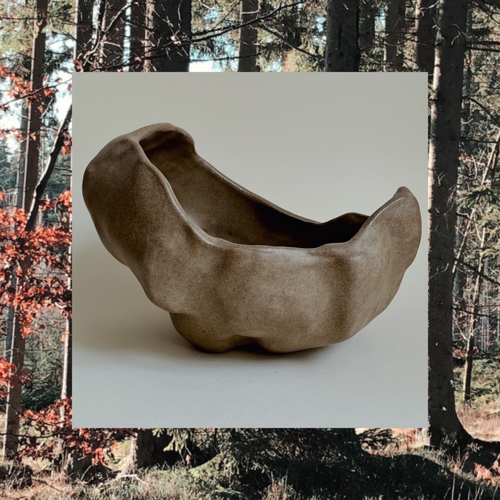 Denna skålen är gjord i en grå lera med mycket chamotte. Chamotte är bränd krossad lera som man blandar i leran för stabilitet och andra egenskaper. Ytan har struktur av chamotten och är inte slät.