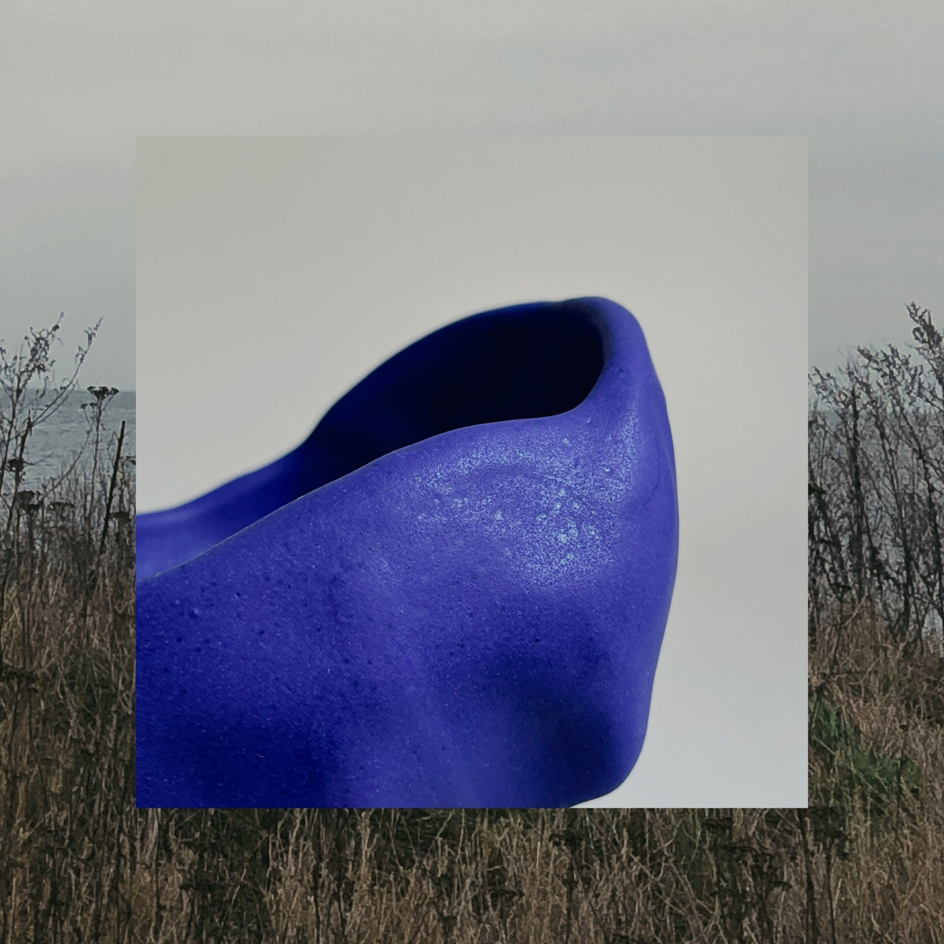 Den här skålen är gjord i en vit lera. Den är slät och glasyren är matt coboltblå.